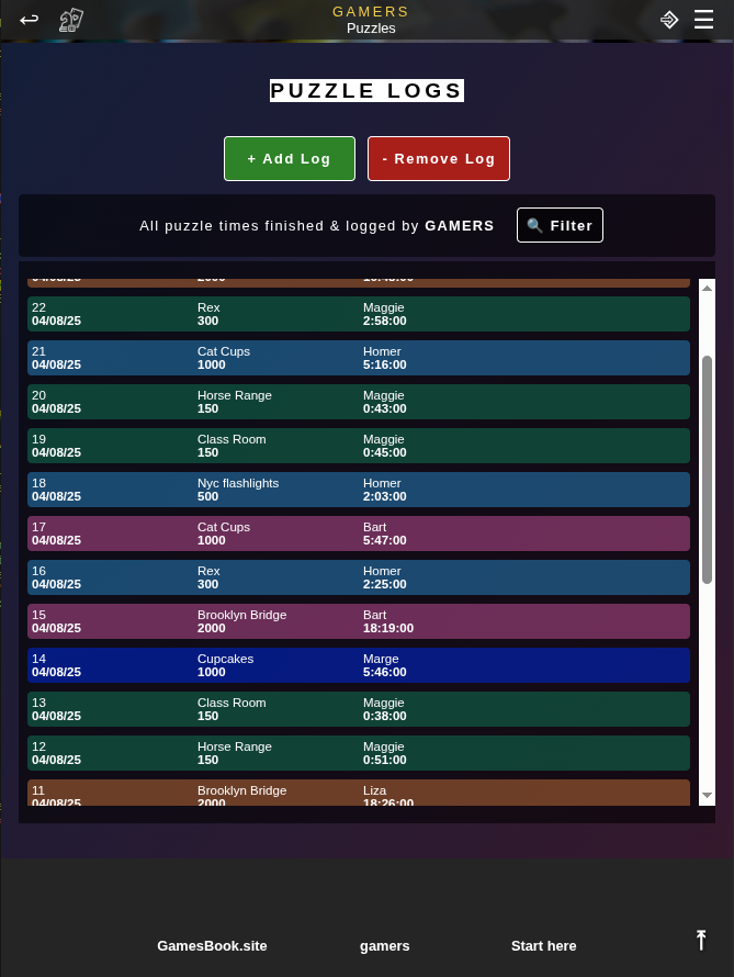 ⌑ If you do a 'Puzzle', you will simply puzzle it and measure the time it takes you to finish it. Afterwards, you log your time in GamesBook.